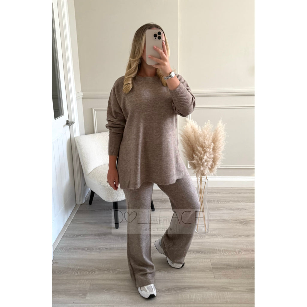 LUCINDA Beige Three Piece Wide Leg Loungewear