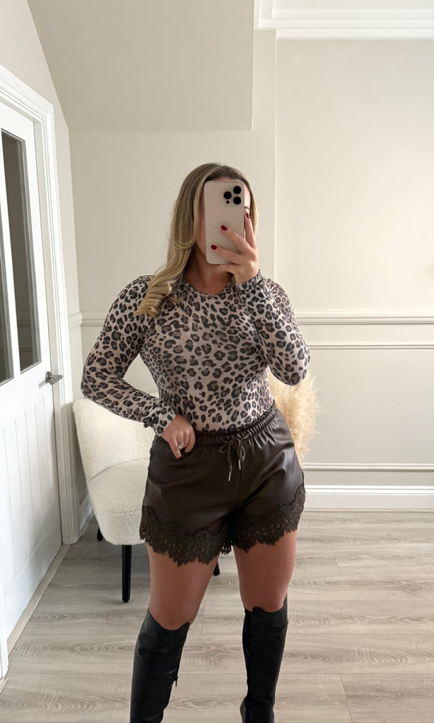 ELLA PU Chocolate Lace Trim Shorts